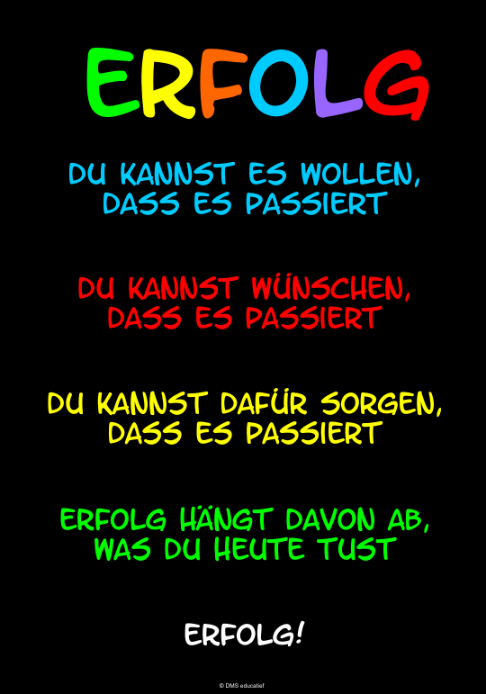 Ein fröhliches und motivierendes Poster, das daran erinnert: Jeder Tag kann ein Erfolg sein. Perfekt für Schule, Zuhause oder den Arbeitsplatz – mit der Botschaft: „Du kannst es wollen, dass es passiert.“ Ein täglicher Impuls für Selbstvertrauen, positive Energie und Zielstrebigkeit.